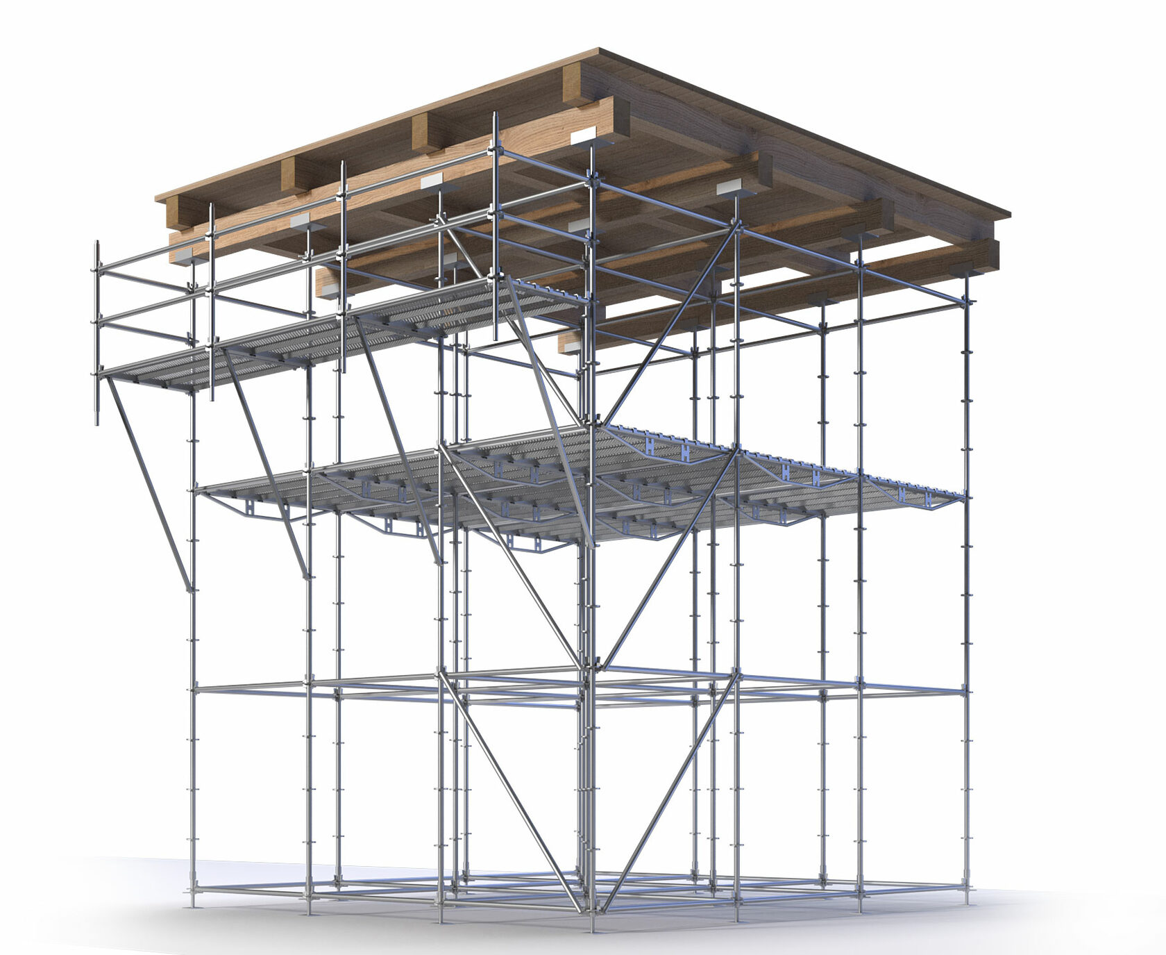 Возвести опорные башни под опалубку, временные опоры под пролетные строения или переходные мостики между отдельно стоящими конструкциями лесов помогут опорные конструкции. Они также разработаны по той же системе, что и модульные клиновые леса.